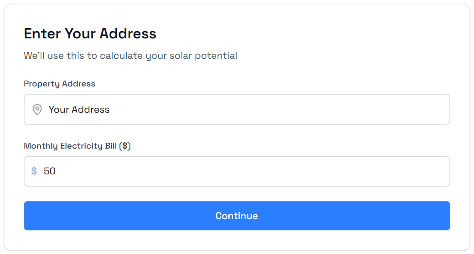 Simply provide your address and monthly electricity bill. Our AI uses this information to understand your energy needs and location-specific solar potential.