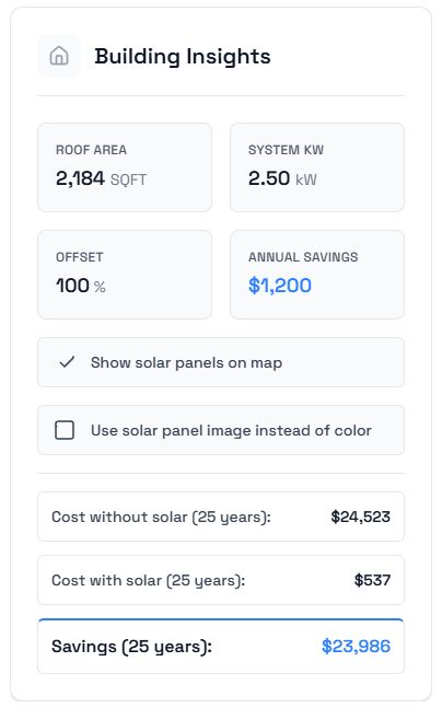 Accurate pricing, live roof preview, and personalized solar recommendations using your address and electricity bill.